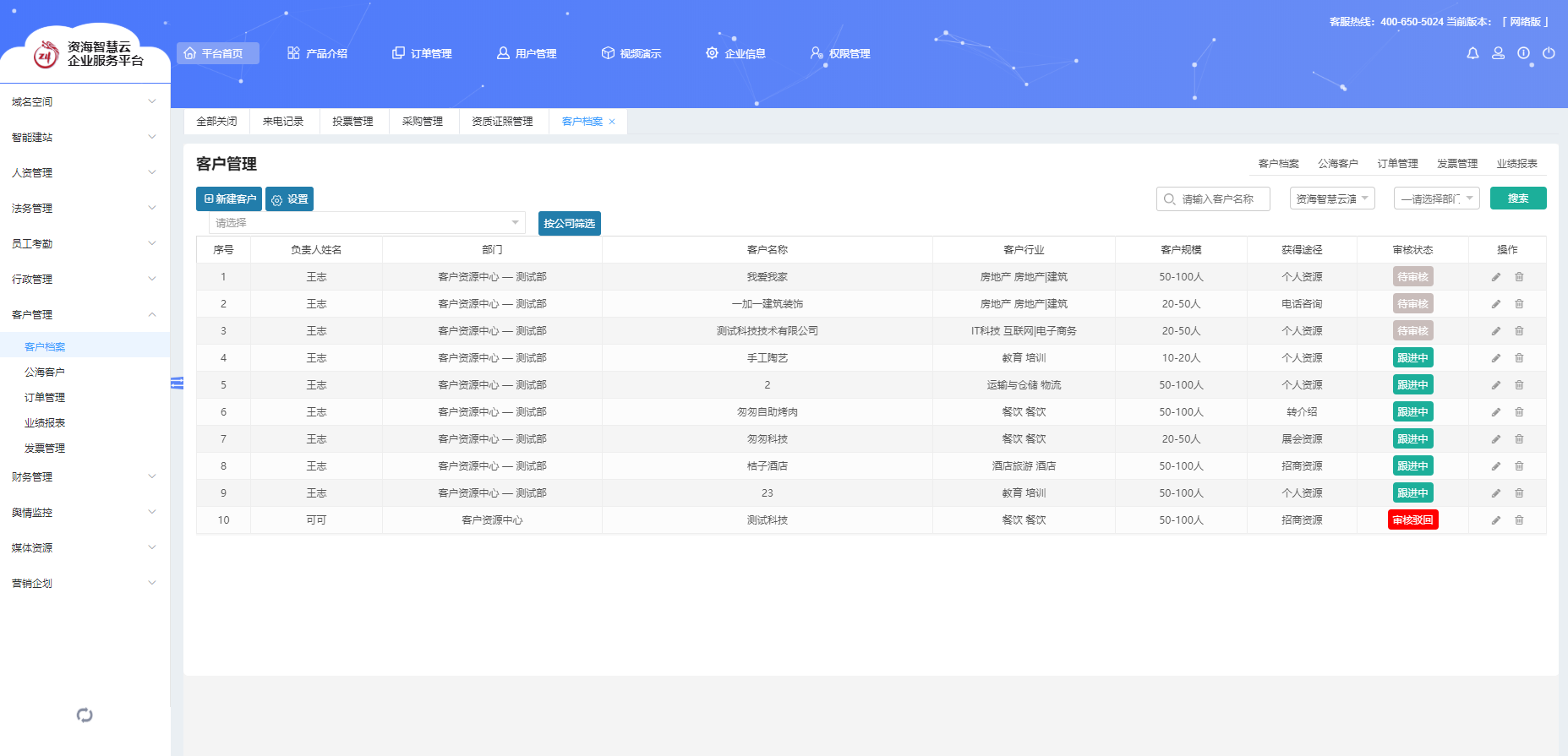 客戶檔案、營銷線索管理